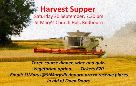 Please join us for a Harvest Supper on Saturday 30th September, 7.30pm in the Transept.