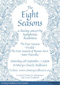As part of our St Mary’s Arts Festival from 10th – 12th September we are delighted to welcome back our friends from Symphonia Academica orchestra with this wonderful concert ‘The Eight Seasons‘.
