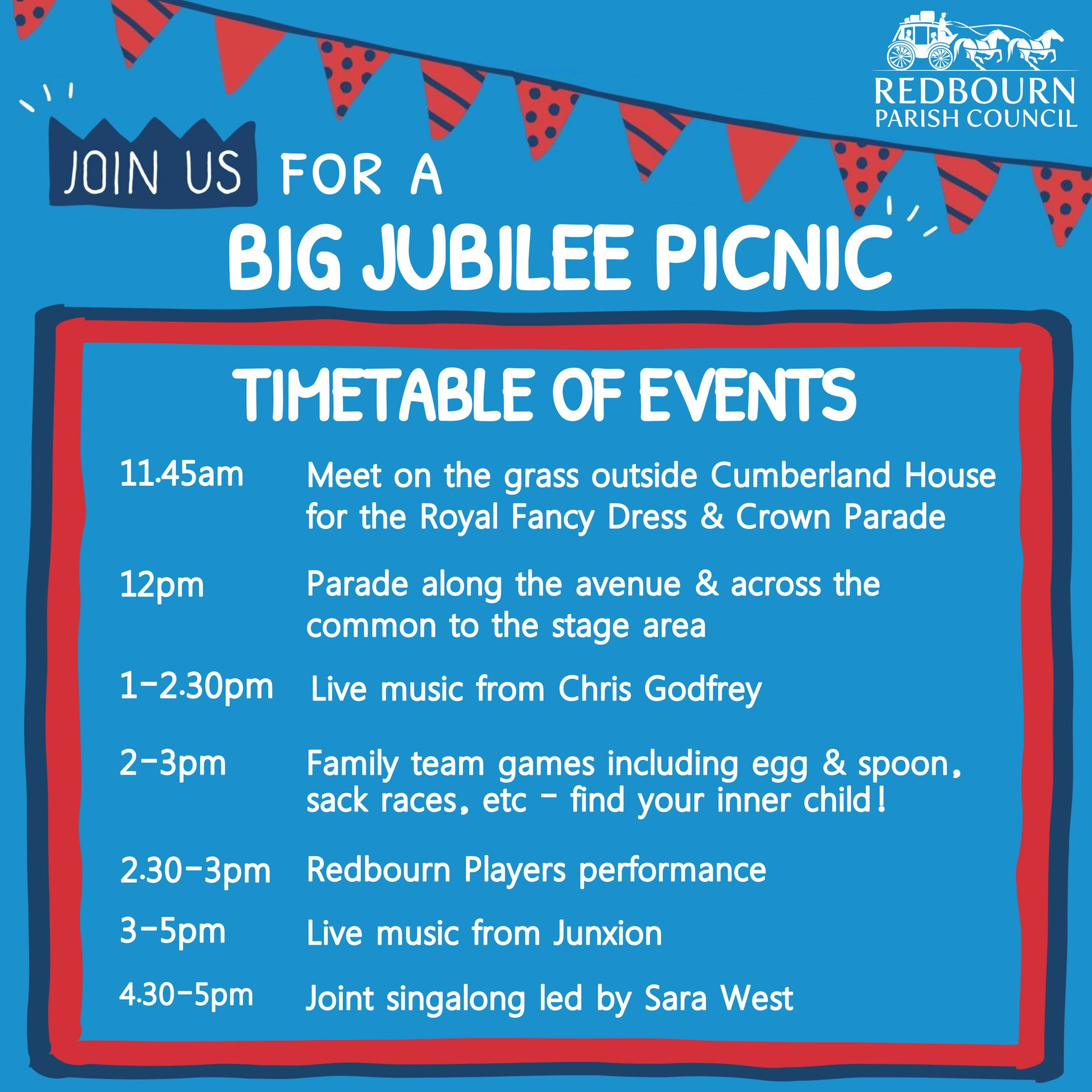 Come in crowns and regal attire or in 1950s dress – the choice is yours – and set up your picnic spot on the grass with friends and family. The Big Picnic is STILL ON despite the weather forecast – bring your waterproofs, umbrellas, and gazebos/pop up shelters (please keep these to the outer edges of the Common).