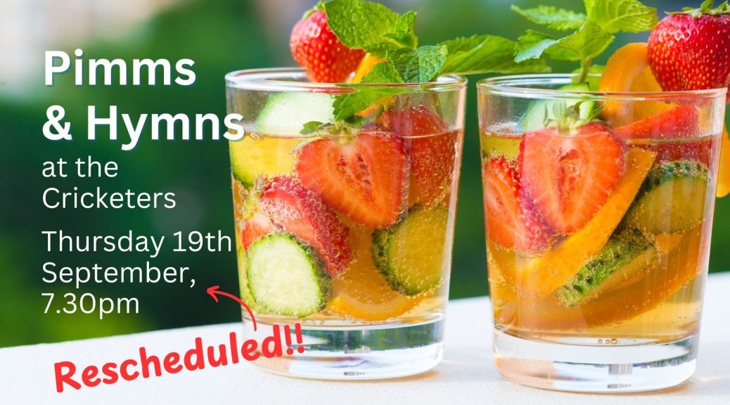 Please join us for Pimms and Hymns on Thursday 19th September, 7:30pm at The Cricketers.