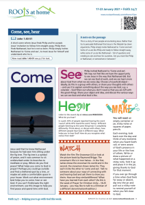 - Browse the Roots Bible Study for this week for more ideas of things to do, read or think about this week, music you can listen to or sing along to at home.