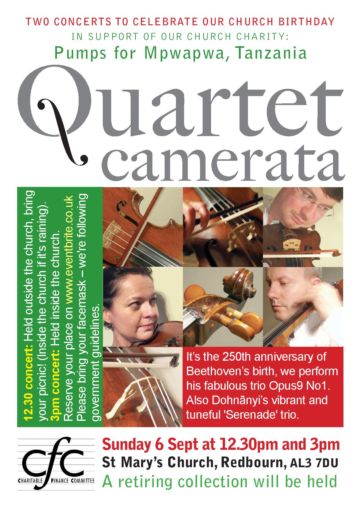 The concert will be at 3.00pm inside the church. All are welcome to join us. Admission is free but there will be a retiring collection in aid of our Charity of the Year, Pumps for Mpwapwa – providing a solar-powered water pump in the village of Msagali in Tanzania.